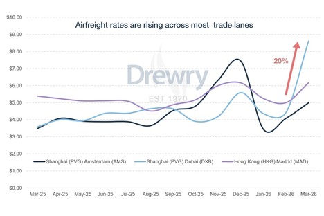 Airfreight rates surge up to 95% on capacity and fuel costs