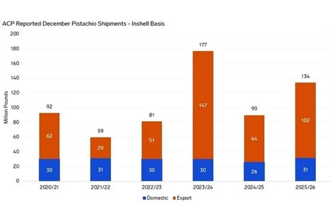 U.S. pistachio November shipments up 8.8 percent compared to November 2024