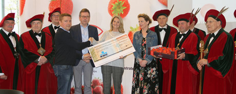 These first strawberries were sold to buyer Delidis for the price of €500 per 500 grammes. Hoogstraten doubled the price in name of the growers, so that Maaike Cafmeyer, ambassador of Ups & Downs, received a wonderful cheque of €8,000. Ups & Downs is an association for people who are bipolar or chronically depressed and their friends and family. What will they do with the money? Erika Danckaers of Ups & Downs: “We’re very thankful for this generous donation. Our organisation is solely run by volunteers. We mostly want to use the money to organise gatherings for sufferers. Besides, we want to bring attention to psychological vulnerability and break the stigma. For example, we organise a number of lectures in schools and institutions, and we want to add companies to that list this year. After all, the taboo should also be broken in the workplace. The money will definitely be put to good use.”