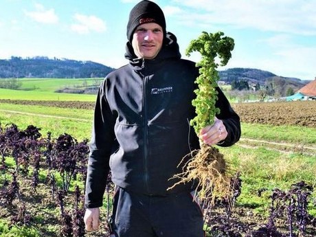 A farmer who grows "Leaf to Root" vegetables is Stefan Brunner from Spins near Aarberg. He, too, wondered why so many edible pieces of vegetables were being discarded.