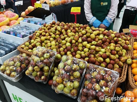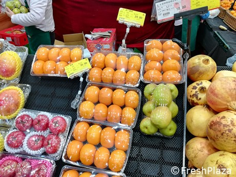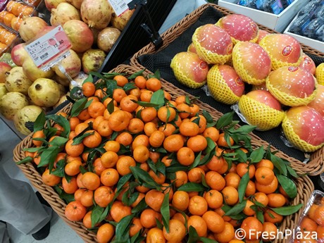 Clementine tangerines were sold loose (photo above), while packaged ones were sold at 28.80 Renminbi a packet (8 fruits = 3.7 Euro).