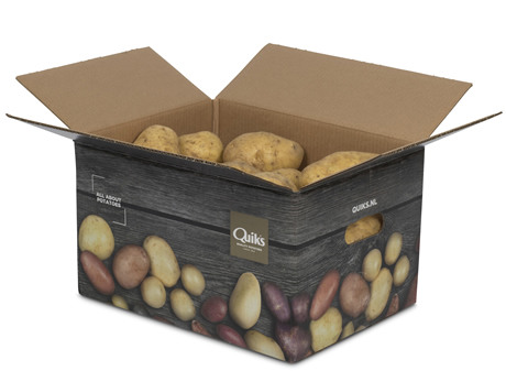 These weighed potatoes make their way to the catering sector and the industry. A handy box has been designed for buyers in the catering world. It has full-color print. This emphasizes the endless possibilities.