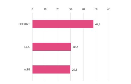 Belgians find that Colruyt offers the best promotions. Colruyt is followed by the discount chain stores, Lidl and Aldi. These are the top three in Flanders. Albert Heijn is, however, short on Aldi's heels. In Wallonia, it is a neck-on-neck race between the discount chain stores. Here, Aldi narrowly wins. In Brussels, Colruyt is in first place, followed by Delhaize and then Aldi.
