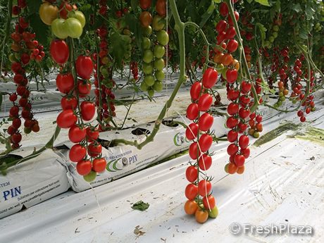 "The 10003 F1 midi plum is a tomato of approximately 35 grams. This well-balanced plant is structured in such a way that allows it to be sufficiently ventilated. This variety can easily face extreme winter conditions. The is good looking and compact, with a very thick and fleshy stem. The ripening is uniform with bright red berries " explains Emanuele Marino, Vvibes crop specialist.