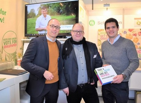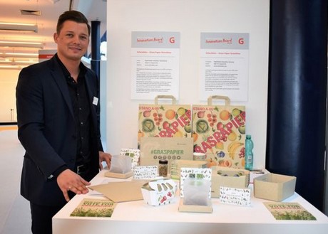 At last year's Fruit Logistica, the company's grass paper won another bronze award at the Innovation Award. The organic packaging material consists of 50 percent fresh grass fibers and is fully recyclable and biodegradable. The use of grass fibers, a renewable raw material, should help to reduce energy and water consumption. Conventional pulp fibers require 30,000 liters of water and 6,000 kW/h of energy per ton, compared to 0 liters and 150 kW/h for grass fibers.