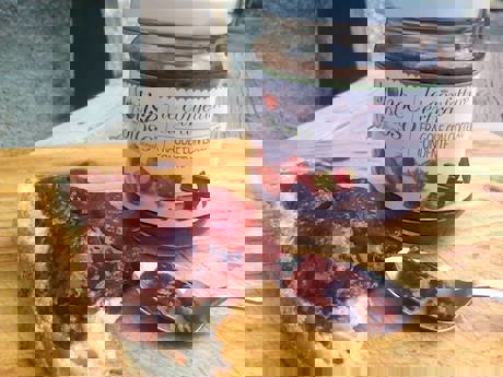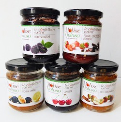 The sweet range includes the following jams: wild blackberries, sour cherries, apple and cinnamon, strawberry and chocolate, peach and amaretto biscuits. The Montagano green tomato jam, available in 200 gr jars, is ideal paired with cheese.