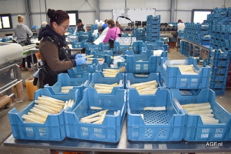 The harvest at grower Bries-Tijskens started on March 7 and 20% of the asparagus have now been harvested. Due to the recent frost, 10% of the asparagus was lost. The grower plants a harvest of both white and green asparagus every year. According to the grower it's important that asparagus remains a real seasonal vegetables. "Asparagus are a real spring vegetable, so there have to be asparagus for three months. This means it's a surprise every time."
