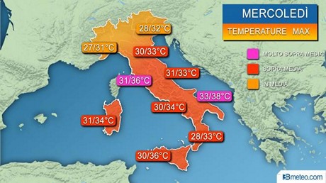 As far as this country is concerned, in the coming days the temperatures will slightly drop in the northern regions, whereas the South Central area will be hit by the African anticyclone causing high temperatures and sultry weather throughout the whole week.
