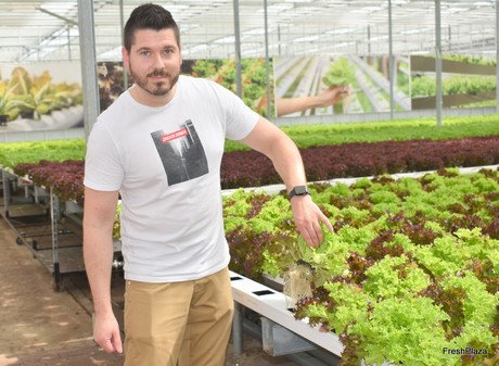 Marcel Schütze shows fresh, vertically farmed lettuce