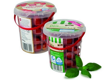 Pöppelmann Famac has presented a packaging for snack tomatoes that truly impresses everyone, with material savings of up to 30%. The snack tomato bucket, a form of packaging that has proven its worth in the food trade, is now available in a resource-saving and visually even more attractive design: Pöppelmann Famac presents a transparent plastic bucket with a colored handle and a capacity of 870 ml.