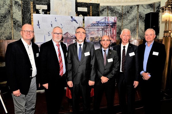 Left to righ: Thomas Lütje (HHLA), Ingo Egloff (Board of Management HHM), Dr. Ing. Hans-Peter Hinrichsen (Deputy Ambassador of Germany in Prague), dr. Alexander Puk (Economic Department of the Embassy of the Federal Republic of Germany in Prague), Vladimír Doboš (Head of the Representation of Prague), Bernard Bauer (Managing Director DTIHK) Photo: © HHM