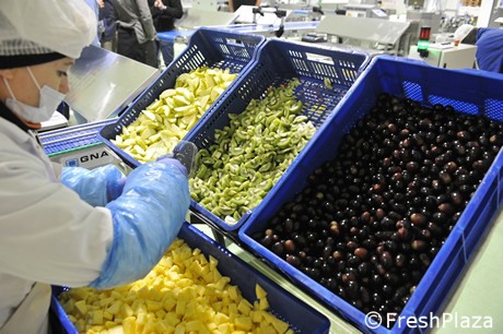 Fresco Senso, brand part of Gruppo Agribologna, produces ready-to-eat fresh fruit salads that undergo no heat treatment and are preservative free. Inside the San Pietro in Casale facility, Fresco Senso manages the entire fresh-cut processing cycle: washing, peeling and cutting down to packaging and delivery.