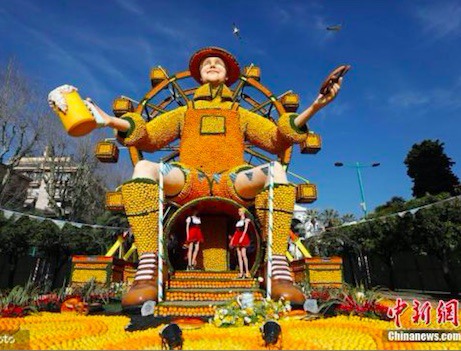 On February 18th, the 87th Menton Lemon Festival took place in Menton, France, with the theme of "Parties Around the World”. The sculptures made using fruit caught a lot of attention.