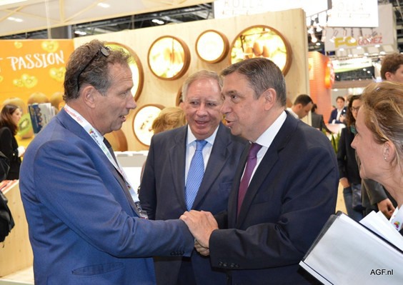 Clearly, a pre-Coronavirus photo: last year, Kees Oskam still shook the Spanish agricultural minister's hand at the trade show.
