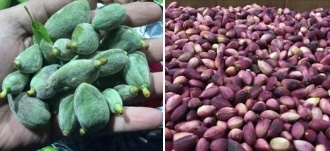 Left: Fresh almonds, right: Fresh pistachios