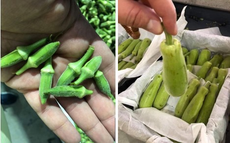 On the left: Oriental vegetable Okra, Right: Mini pumpkin