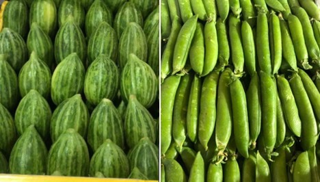 Left: 'Egg'-cucumbers are a round vegetable, very popular in the oriental kitchen. Right: Beans and other legumes belong to the staple foods in the Arabic region.