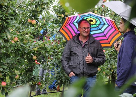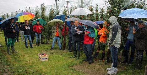Despite the pouring rain, the cultivation advisors of both the Southern German producer organisations and German Fruit Varieties Consortium (DOSK) were in a good mood at the producers' meeting, as excellent SweeTango® apples can be expected.