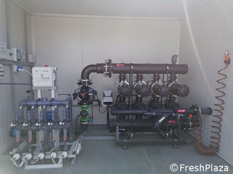"It is a modular system equipped with a micro-sim and peripheral field units that can manage up to 48 valves, 8 fertilizers and agitators via radio/wireless applications. IrriFarm, distributed exclusively in Italy by Netafim under the Netafarm brand, is ideal for all crops: citrus fruit, strawberries, peaches, apricots, kiwifruit and much more. It is a high-precision system to manage irrigation and fertigation, a way to monitor everything that happens with the possibility to intervene swiftly without the need for field operators (Above right: a complete IrriFarm fertigation system).