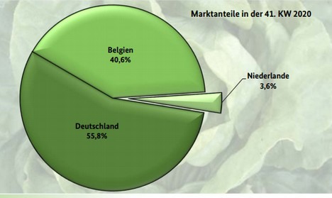Regarding lettuces, Germany dominated the market, followed by Belgium and the Netherlands. Sales possibilities had been limited, but deliveries were limited as well. Prices often remained at their previous level. Locally, slight price increases were established due to the reduced supply. Belgian batches arrived in Frankfurt at €6.50 per 8-piece box. In Munich, prices increased, based on reduced availability. Interest in German lamb's lettuce increased in Frankfurt.