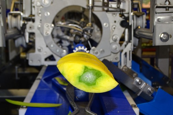 ‘We're delighted that it's now running in our workshop. The design has changed quite a bit. For instance, there are fewer protective covers. That makes it easier to clean and maintain the machine. It's footprint's also been reduced. But the unique, top-to-tail, peeling method has remained the same. As has moving the fruit by gripping the stone."