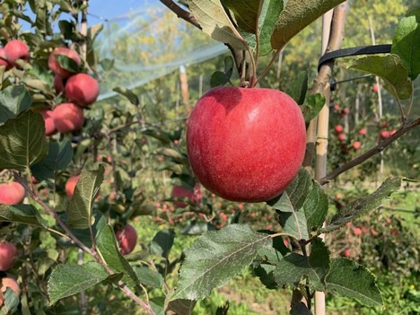 "The fruits have an interesting size, with a beautiful deep red color. Inside, the pulp is very white and oxidizes slowly. The fruit is sweet, crunchy and juicy, with a good balance between sweet and sour."