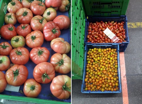Unusual tomato varieties from Bavarian production: Ox heart (l) and colorful cocktail tomatoes.