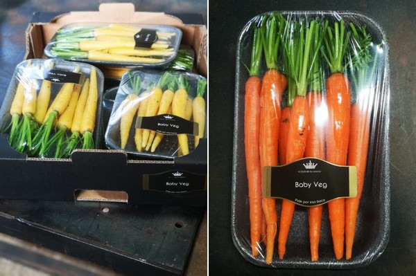 Baby carrots are harvested up to a month and a half earlier than normal. “We work with carrots that are conventionally marketed in bunches, although we harvest them much earlier. This is the second year in which we are investing in the cultivation of baby carrots, with which we have taken more risks to find new clients."