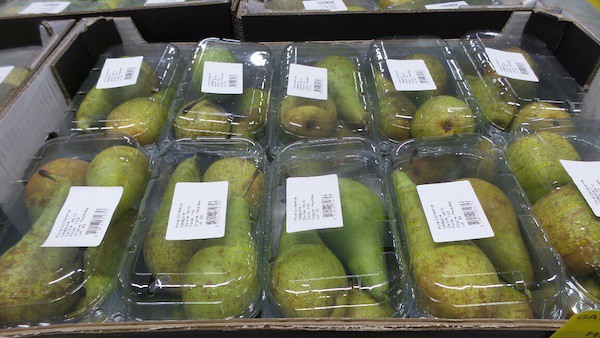 Green Comice pears of category I. Also offered in category II, in bulk or trays