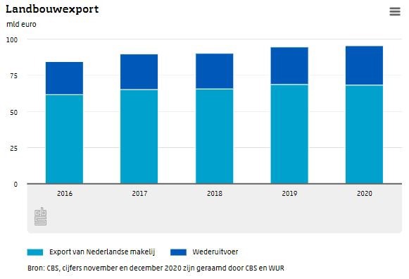 This slight increase is somewhat nuanced. Agricultural exports volumes decreased slightly. But export prices rose. That accounted for the growth in export value. Moreover, the value of Dutch agricultural exports decreased by 0.6 percent. Total agricultural export values nevertheless grew. This is because agricultural goods re-exports increased by 5.1 percent. A third nuance is that this estimate is more uncertain than in previous years. Again, because of COVID-19.
