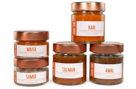 The GiardiGiò line features five flavors with exotic names - Amal (onion, apple and ginger chutney), Hari (pepper and mustard seed chutney), Maya (carrot and cumin chutney), Salman (squash, cinnamon and chili pepper chutney), Samir (cauliflower and chili pepper chutney) available in the 100 and 200 g formats and, upon request, in large formats up to 3 kg for the H&R segment.