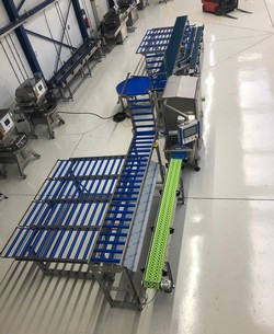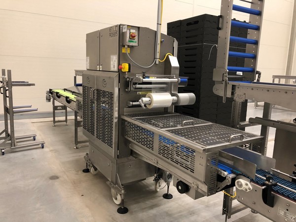 "The trays of grapes arrive in boxes. The trays are removed from the box and put on a conveyor belt. This supplies the machine. The empty box is then transported to the end of the conveyor belt. There the sealed trays can be packed back into it. For the B-product, there's a separate belt that transports the trays to a turntable. So, you can work very efficiently," he explains.