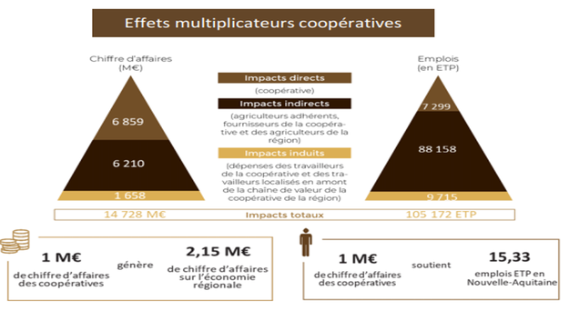 The cooperative agricultural model has a positive and significant impact on the local economy of the Nouvelle-Aquitaine region, as shown by the TRACE program conducted by the Nouvelle-Aquitaine Agricultural Cooperation and Vertigo Lab over the year 2019. The objective of the program was to evaluate the global socio-economic impact of agricultural cooperatives on the region. Nouvelle-Aquitaine is Europe’s leading agricultural region in Europe, with 83,000 farms and 4 million hectares of production. Nine committed cooperatives, representative of the diversity of the region’s productions, participated in the program.