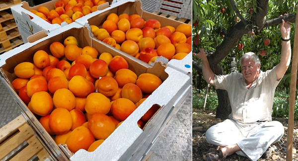 Left: Boléro apricots, an offspring of the Orange Red. It has more color and flavor. Right: Theo Kampschoer.