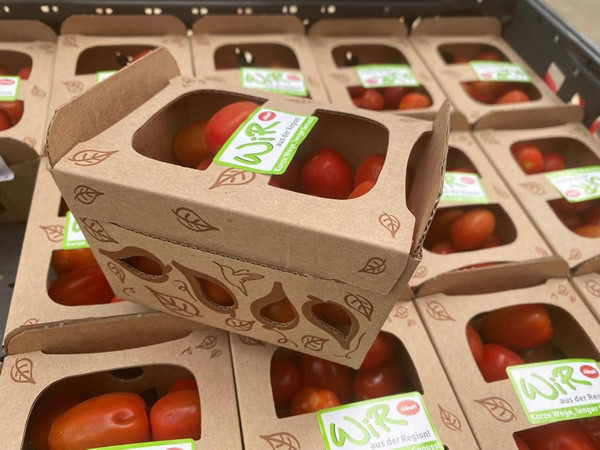 Since then, many growers and importers have started using this packaging under private labels. That includes the German tomato-growing Bong family. For Michael Bong, this fulfills a wish. "One of our retail customers told us they want to remove all plastic packaging. We'd been supplying our tomatoes in this for years. So we started trawling the Internet. We wanted to find a fun, attractive, but above all, more natural way to package our tomatoes. When we saw AGF-Holland's packaging line we loved it right away," he says.