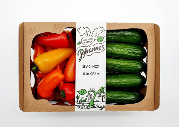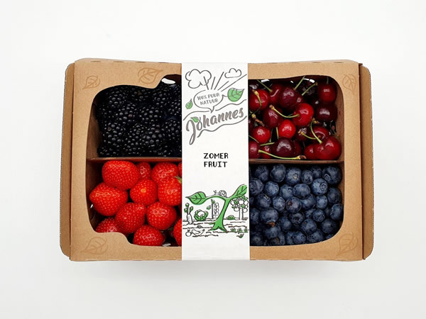 A few years ago, wholesaler AGF-Holland introduced the Johannes packaging line. This plastic-free line consists of baskets, trays, and banderoles. It's made from specially-developed natural cardboard that uses 100% organic, biodegradable material. All packaging is now also available with a sealing/click lid.
