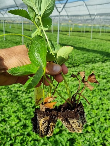 "Despite the difficulties caused by the pandemic and other problems, producers have achieved great results, plus there are new companies that decided to invest in this early cultivar. There are many reasons why strawberry growers choose Fortuna, including the possibility of covering a commercial window that is rather empty, thus guaranteeing supplies to big retail chains. There is also the fact that they can retain labor by employing it for a longer period of time." (Right: Fortuna plant in a foreign nursery).