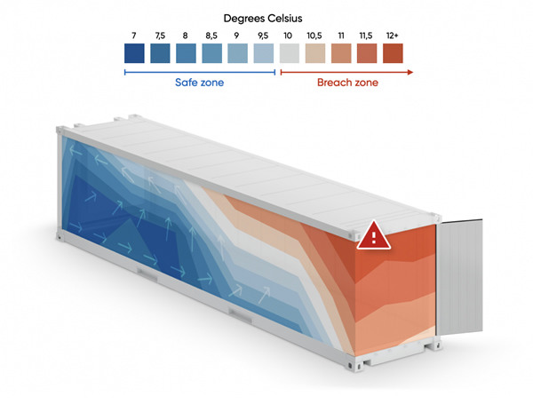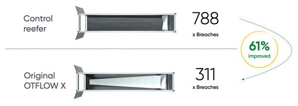 The test showed that the temperature in the 25 containers without the Otflow technology rose too high 788 times. In those with the mats, that was 311 times. That is a 61% improvement.