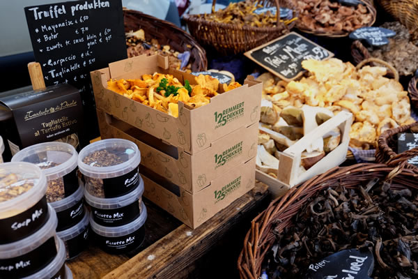 These crates' dimensions are compatible with the fruit and vegetable sector's logistical sizes system. A 40x60 EPS crate can hold four crates, and other sizes are also possible on request. The crates are assembled in-house in North Holland, and are made from sustainably certified cardboard using green energy.