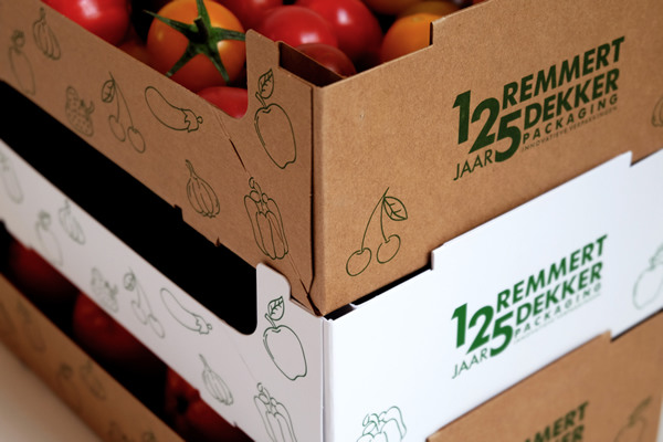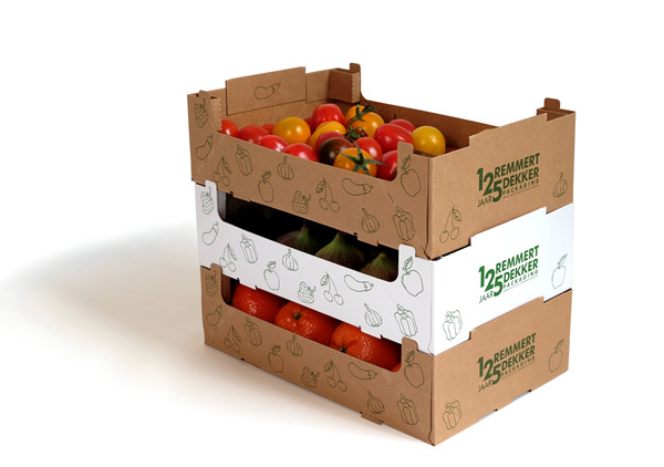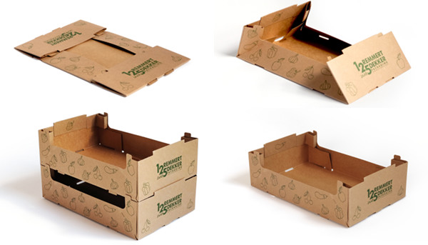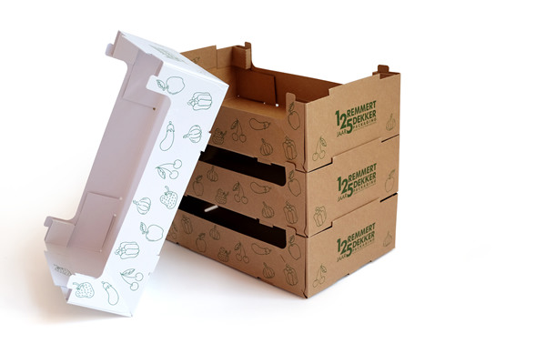 "The extra glued corners are what allow this: they fold out when the crate is set up. This construction is a proprietary development and specially developed using our folding/gluing machine," says Kees Lamboo, a structural designer at Remmert Dekker Packaging. The packaging is delivered pre-glued, so you can use it right away, without a set-up machine.