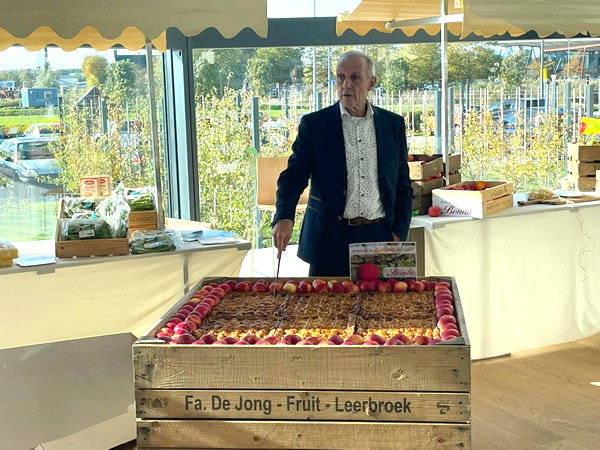 "We took the opportunity to offer Van Gelder an apple pie measuring one by one meter. It was made from the first Bonita apple harvest." Dirk characterizes the Bonita as a hard, juicy, tart apple and it is scab resistant.