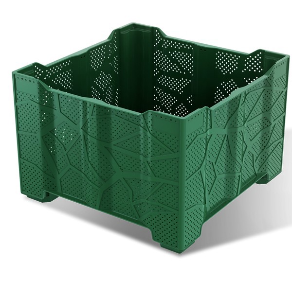 Ivy, inspired by nature, is a large crate made of HDPE (high-density polyethylene) that sets new standards in the field of logistics management, design and product innovation and makes an important contribution to a more responsible development of apple logistics, among other aspects.