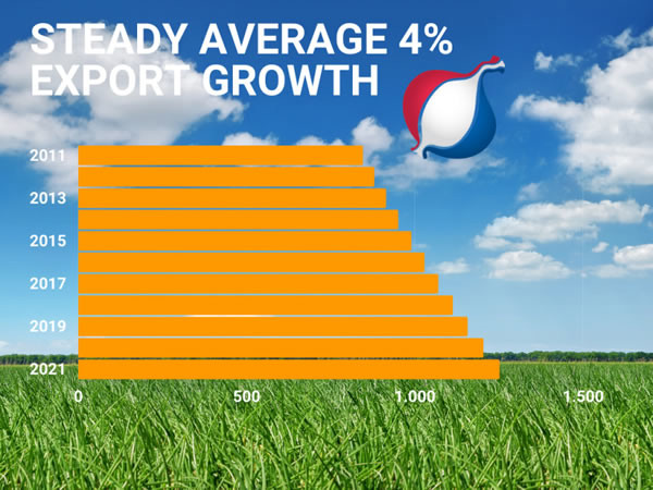 This season's export figures were already well past the half-a-million-ton mark. That was after just the first 18 weeks. The Netherlands sold 531,000 tons to 129 countries abroad in the previous season. That was in the same period. In the first 18 weeks of the previous season, that had reached 486,000 tons. There is a trend of sustained export growth averaging four percent per year. It, thus, remains fully in line with global production growth.