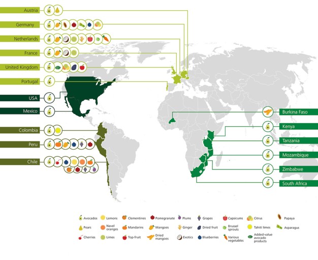 This picture shows how internationally connected the company is. Credit: Westfalia Fruit International