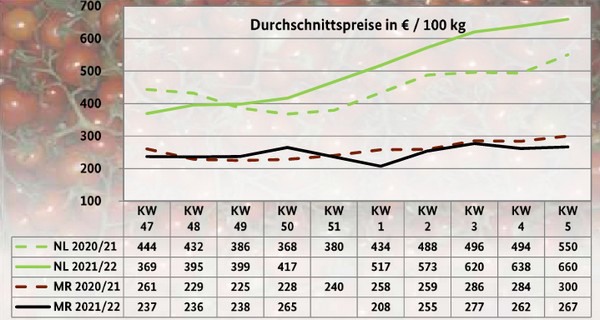 Tomato prices on the European market usually start falling in February. But what is still considered "normal" in the tomato world these days, after prices have been above-average since last summer? Patterns have flown out the window. First of all, because of the global pandemic. But since then, even more so because of tomato virus problems, and now also the energy crisis.