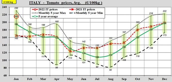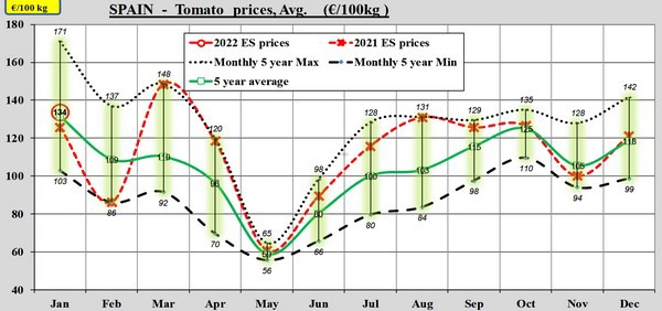 That can be seen in the German wholesale markets too. Spanish tomatoes' average price is higher than in 2021, but not that much higher than that of Dutch tomatoes. Those prices are considerably higher than last year.