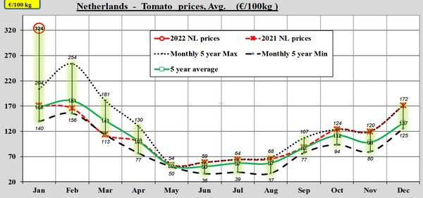After all the recent happenings and figures, it is no surprise that in January 2022, too, there are plenty of plusses in the tomato market. This year has started where 2021 left off. Once again, the Netherlands, in particular, stands out on the European Commission's dashboard with an average price of €3.24/kg.