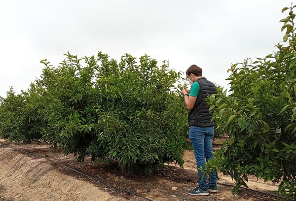 Agrobío technician inspecting the auxiliary fauna in citrus trees