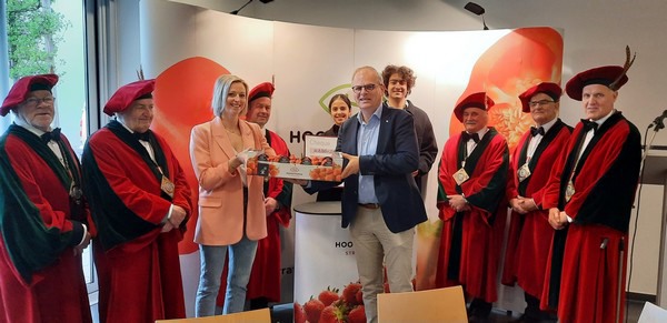 Yesterday, Coöperatie Hoogstraten kicked off the new strawberry season in a festive mood. That was done digitally last year, but this year, the cooperative could again receive guests at its premises in Belgium. As is tradition, the first tray of strawberries was auctioned, and Sebrechts Groenten & Fruit from Antwerp bought it for €500 per 500g punnet. The tray consists of eight of these punnets, bringing the total to €4,000.