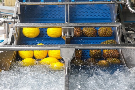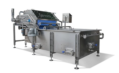 The Italian company PND has created and released on the market a new tank for washing two different fruits at the same time. It is called Magnum. The water flow pushes the fruits on a modular belt, allowing the product to be washed in water even if it is not floating. The product is washed through a mumbling system. The washing tank is equipped with a recirculation pump and a water filtering system to minimize water waste. It is also possible to adjust the belt speed thanks to an inverter installed on the panel. Post-process sanitization is easy, thanks to the openings on both sides of the tank and to the side panels that can be easily overturned. The machine can be equipped with a number of optional instruments ranging from a double filter to a complete conductivity and dosage control system, as well as a misting and blowing system on the outgoing elevator.